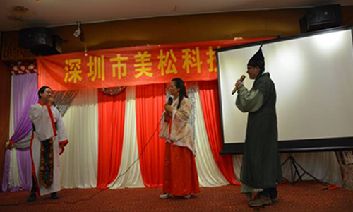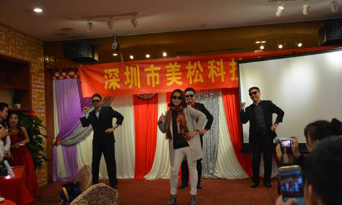 晚會(huì)節(jié)目精彩紛呈,高潮迭起,節(jié)目編排有張有弛,料點(diǎn)十足。在晚會(huì)節(jié)目進(jìn)入尾聲時(shí),2位來(lái)自俄羅斯的外國(guó)朋友—美松國(guó)外合作伙伴,也上臺(tái)給大家?guī)?lái)歡樂(lè)。他們用俄語(yǔ)為我們熱情高歌。俄語(yǔ),雖然很多人聽(tīng)不懂,但是我們美松人用打拍子的方式協(xié)同這位國(guó)外朋友獻(xiàn)出自己的熱情。最后用他們的表達(dá)方式祝愿美松走向更美好的未來(lái),同時(shí)也期盼彼此之間有更多的合作。其實(shí),合作是必然的,我們美松科技的產(chǎn)品早已售往全國(guó),遠(yuǎn)銷海外,相信在未來(lái)的日子里也會(huì)走得更順暢,為更多的客戶獻(xiàn)上更優(yōu)質(zhì)的產(chǎn)品。