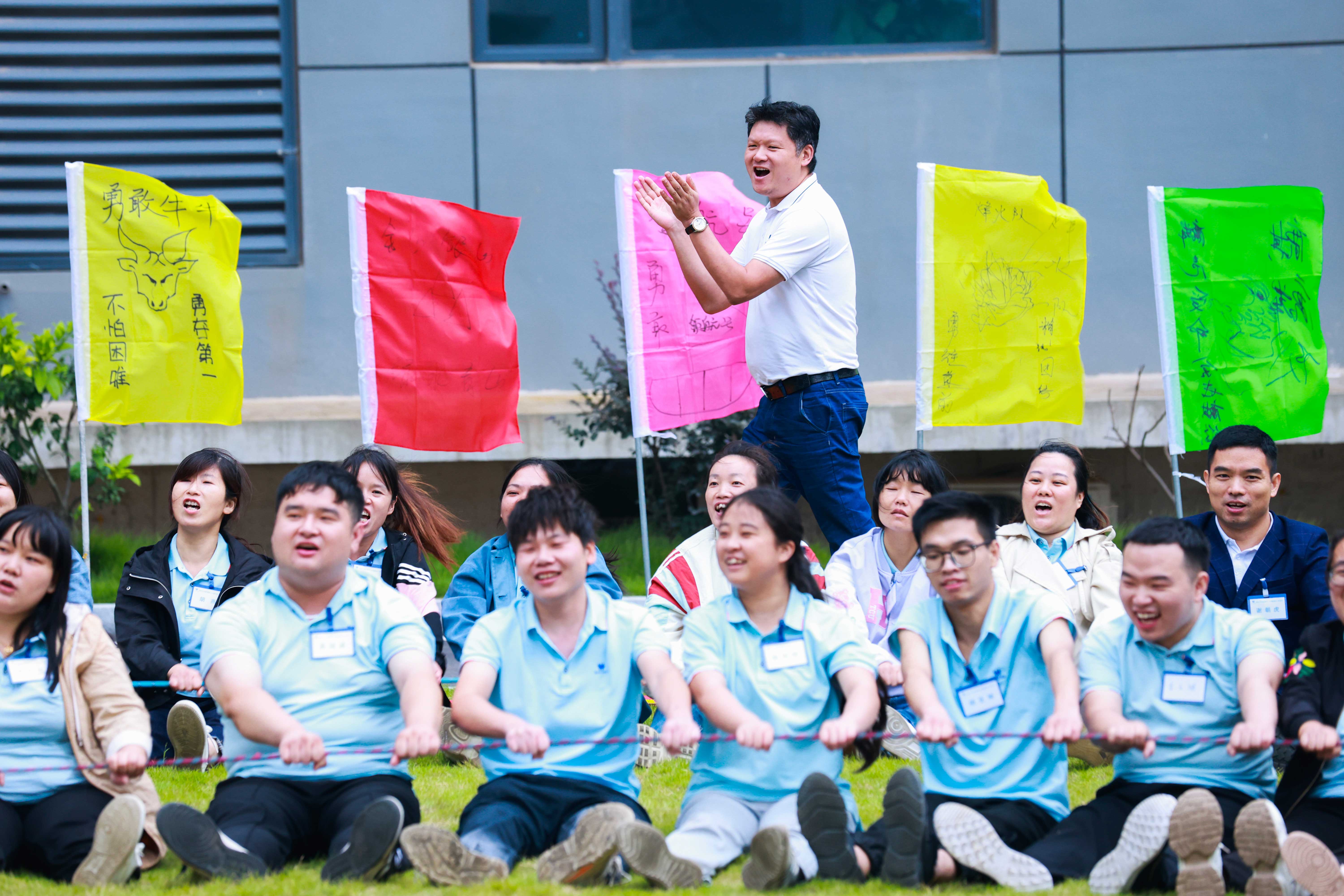 “能量動力圈”項目將活動推向高潮,大家激情澎湃,斗志昂揚,16支隊伍200余人緊緊的聚攏圍圈在一起,緊握首尾相連的繩子并用力拉緊保持圓形,按教練的要求整齊劃一地搖圈若干次,挑戰(zhàn)每個人的極限,從開始不及格的100個到成功挑戰(zhàn)666個的卓越表現(xiàn),讓我們看到了團隊的震撼與力量。我們都知道螞蟻可以負重三十幾倍的自身重量,而我每個成員就像一只只螞蟻一樣充滿了無限的力量和潛能,當我們每位員工在前方?jīng)_鋒陷陣的時候,背后都有一個強大的團隊為他分擔重量。熔煉團隊的過程,不僅提高了我們團隊的凝聚力、向心力、責任感、100%執(zhí)行力,而且還增加我們所有員工之間的信任感與相互理解包容,團隊與團隊之間的互相協(xié)作精神也得到了升華。克服人性弱點,決不放棄直到成功為止,為團隊共同目標的實現(xiàn)而努力奮斗!這過程更是感動的不僅是我們團隊的每一位成員,更有場外的董事長陳斌先生,也親臨現(xiàn)場為我們的所有團隊助陣吶喊鼓掌!