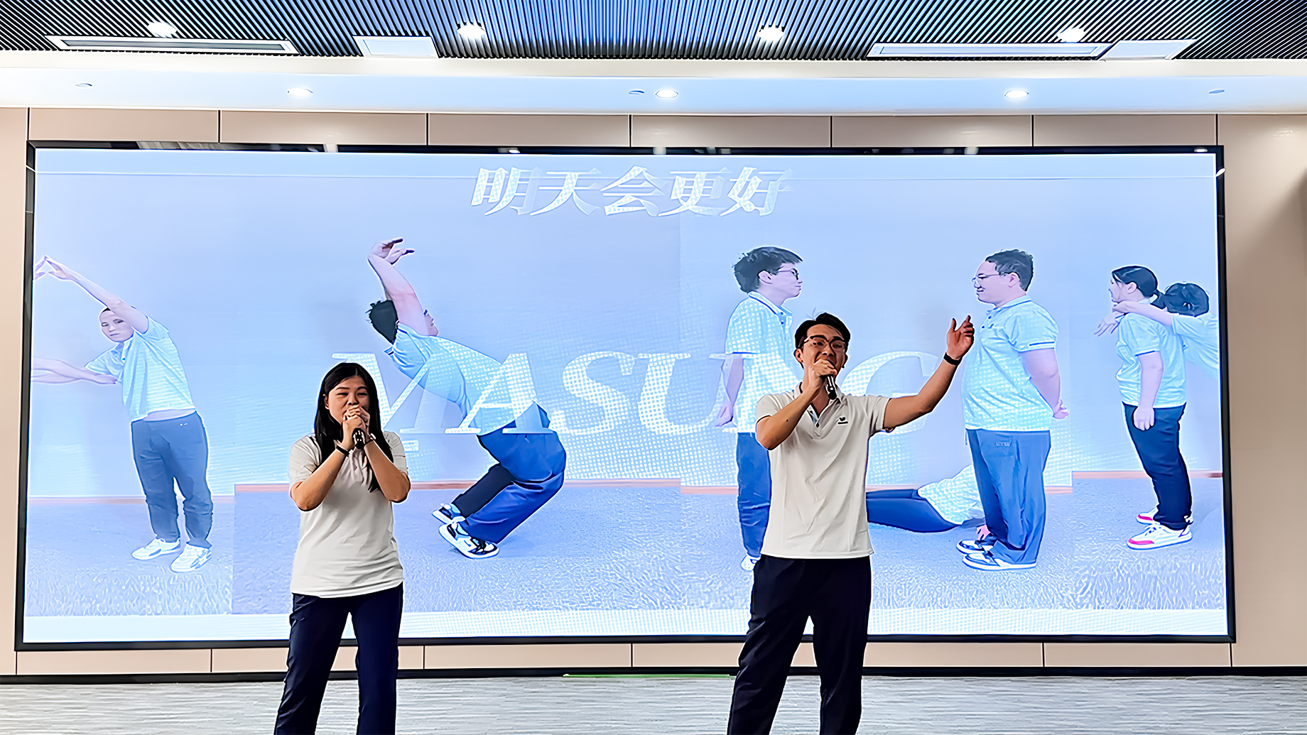 整場(chǎng)節(jié)目表演活動(dòng)都以“成長(zhǎng)”為主線,貫穿美松個(gè)人成長(zhǎng)、美松組織成長(zhǎng)與打印機(jī)行業(yè)成長(zhǎng)三位一體,強(qiáng)調(diào)“專(zhuān)業(yè)、創(chuàng)新、誠(chéng)信、服務(wù)”的美松價(jià)值文化。璀璨舞臺(tái)上,一場(chǎng)跨越時(shí)空的視聽(tīng)盛宴《無(wú)價(jià)烙印與美松傳承》-以負(fù)責(zé)人coco的身份獨(dú)白故事展開(kāi)的一部震撼的宣傳片,通過(guò)光影交織的鏡頭語(yǔ)言,帶領(lǐng)觀眾穿越美松的成長(zhǎng)歷程,19年的風(fēng)雨路程提醒著我們,真正的傳承不是停留在口號(hào),而是在每一天的細(xì)微行動(dòng)中繼續(xù)前行。無(wú)論是資深老員工,還是新加入的同事,都將在一起,把夢(mèng)想變成可感知的現(xiàn)實(shí)。以“恒進(jìn)”的步伐,致敬那些日常里追求極致的人;以堅(jiān)定的信念,迎接每一個(gè)新的挑戰(zhàn);因?yàn)橹灰覀兺?,必將勾勒出“匠心鑄就信賴(lài)”的美松品牌內(nèi)核:明天會(huì)更好!隨著音樂(lè)的響起,全體美松人都加入了和聲,歌聲中既有對(duì)過(guò)往合作的感恩,也有對(duì)未來(lái)共贏的期許.“讓我們的笑容充滿著青春的驕傲,為明天獻(xiàn)出虔誠(chéng)的祈禱!”大屏幕同步播放員工們自發(fā)用人體藝術(shù)形式展示的“MASUNG”LOGO珍貴影像,將現(xiàn)場(chǎng)氛圍推向高潮。這不僅是一場(chǎng)藝術(shù)盛宴,更是美松人對(duì)美松的深情告白:“無(wú)價(jià)烙印”象征著每個(gè)美松人與美松的深厚情誼;“美松傳承”寓意著未來(lái)攜手共進(jìn)的堅(jiān)定承諾。而“無(wú)價(jià)烙印與美松傳承”更是我們美松打印人的合作價(jià)值與美松精神。