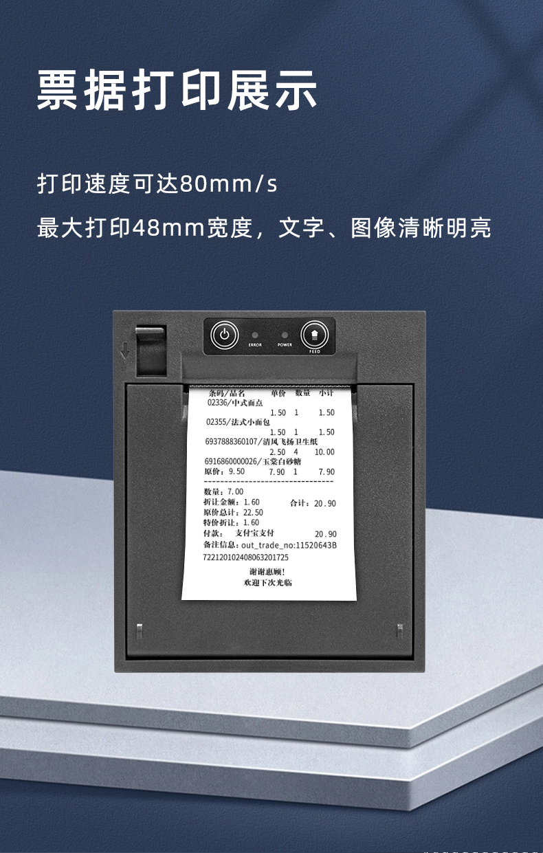 微型打印機(jī)介紹:美松根據(jù)微型打印機(jī)市場(chǎng)需求,自主研發(fā)一款58mm微型熱敏打印機(jī),這款微型打印機(jī)面框兼容80mm打印機(jī)尺寸,帶有錢箱接口,收銀系統(tǒng)兼容性好,紙倉(cāng)空間較大,可以裝60mm直徑紙卷,外觀簡(jiǎn)潔大方,耐用不易損壞,適應(yīng)多種場(chǎng)景,滿足微型打印機(jī)品牌不同需求。型號(hào)為MS-FPT206微型打印機(jī)是一款嵌入式微型打印機(jī),不同于POS打印機(jī)可以隨身攜帶,嵌入式微型打印機(jī)只需要簡(jiǎn)單安裝就能實(shí)現(xiàn)打印功能的打印模塊,MS-FPT206可嵌入在不同的終端設(shè)備,例如加油站、餐飲收銀機(jī)等,微型熱敏打印機(jī)是零售、餐飲、娛樂(lè)、醫(yī)療、物流等行業(yè)的自助終端設(shè)備理想打印伙伴。