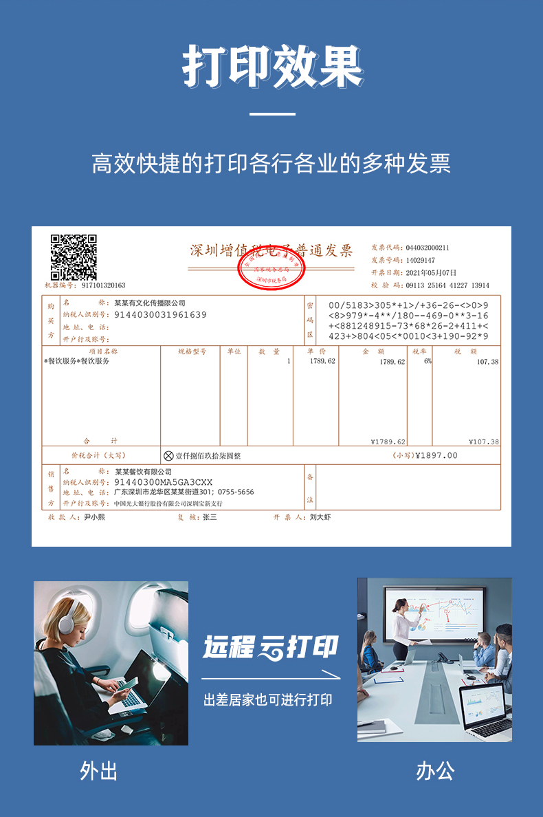 電子發(fā)票自助打印機(jī)介紹:美松電子發(fā)票打印機(jī)支持云打印,這款6寸發(fā)票打印機(jī),可打印160mm寬的紙卷,電子發(fā)票采用長(zhǎng)效熱敏紙保存時(shí)間長(zhǎng),用在電子發(fā)票自助打印終端,消費(fèi)者在電子發(fā)票自助打印終端掃碼填寫發(fā)票信息自動(dòng)打印紙質(zhì)電子發(fā)票,節(jié)省企業(yè)時(shí)間成本,提高工作效率。