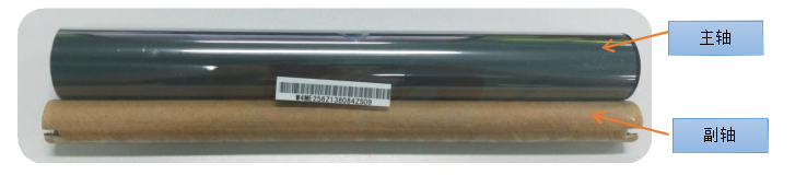 第二步:安裝回收色帶部分:將回收色帶部分(副軸)的一邊用力按壓裝入彈力座,后裝另外一邊有卡扣位置(注意卡扣固定位置與色帶芯缺口部分重合)。