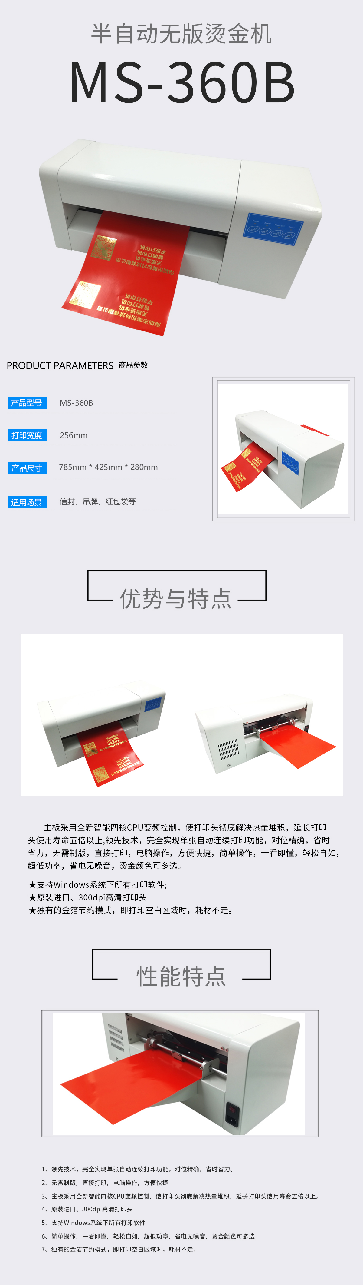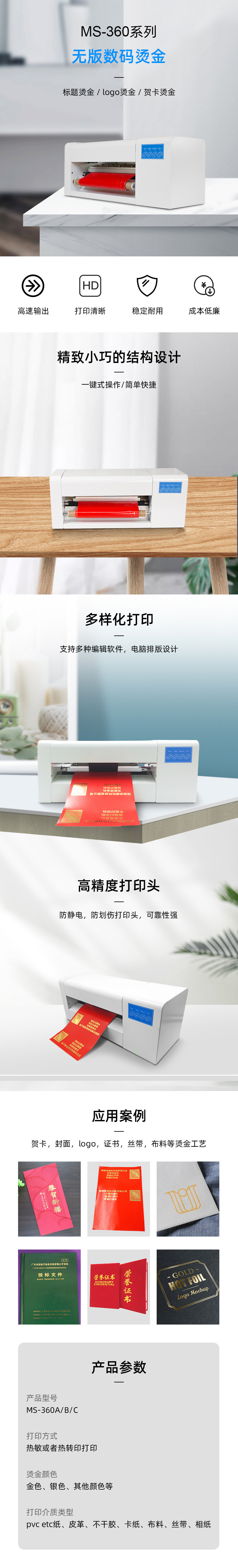 美松數(shù)碼無版燙金印花機(jī) 1.完全實現(xiàn)了單張自動進(jìn)紙功能,省時又省力 2.直接usb,U盤輸出,無需制版直接打印電腦操作方便快捷 3.可連續(xù)打印卷材,即打即用,省時省力 4.全新智能四核CPU變頻控制,使打印頭徹底解決熱量堆積,延長打印頭使用壽命五倍以上