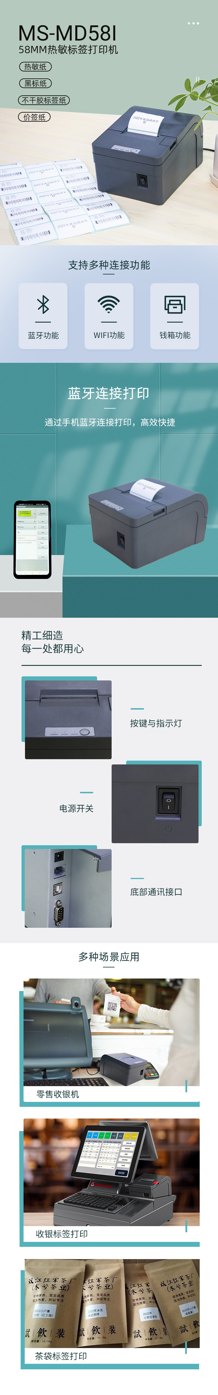 票據(jù)打印機(jī)特點(diǎn):這是一款桌面式票據(jù)打印機(jī),支持條碼打印、標(biāo)簽打印、不干膠打印、熱敏紙打印、收銀紙打印、價(jià)簽打印,打印無氣味、無碳粉、無臭氧,綠色環(huán)保,帶來更安全的打印。人性化設(shè)計(jì),紙倉開啟角度寬,裝紙維護(hù)便捷,小巧機(jī)身,適用于狹窄的柜臺(tái)空間,藍(lán)牙、錢箱接口完善,58mm票據(jù)打印機(jī)是零售、餐飲行業(yè)打印解決方案。