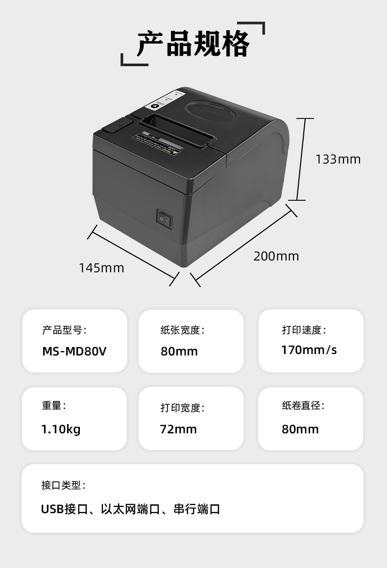 80mm小票打印機(jī) 熱敏后廚房前臺收銀餐飲打印機(jī),支持前臺收銀與后廚菜單打印、打印機(jī)帶切刀自動(dòng)切紙、USB/網(wǎng)口可供選擇。在零售、餐飲、服裝、寵物、烘焙、母嬰等行業(yè)擔(dān)任前臺收銀、后廚打印、點(diǎn)餐系統(tǒng)、銷售單據(jù),準(zhǔn)備配貨、手機(jī)支付等功能的應(yīng)用。