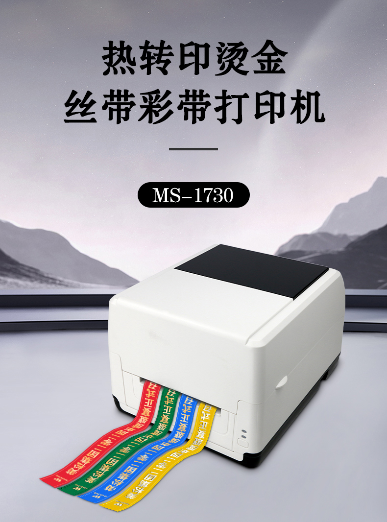 MS-1730_熱轉(zhuǎn)印燙金打印機,是一款多功能的桌面式絲帶,票據(jù)標簽打印機. 根據(jù)打印紙卷和碳帶的不同,可以分別用來打印熱轉(zhuǎn)印標簽,和燙金絲帶實現(xiàn)一機多用, 多介質(zhì)偵測,可手動進行調(diào)節(jié),可適配市面上大部分的打印寬度, 根據(jù)碳帶的顏色不同可以打印多種顏色的標簽 操作簡單方便快捷,更易上手
