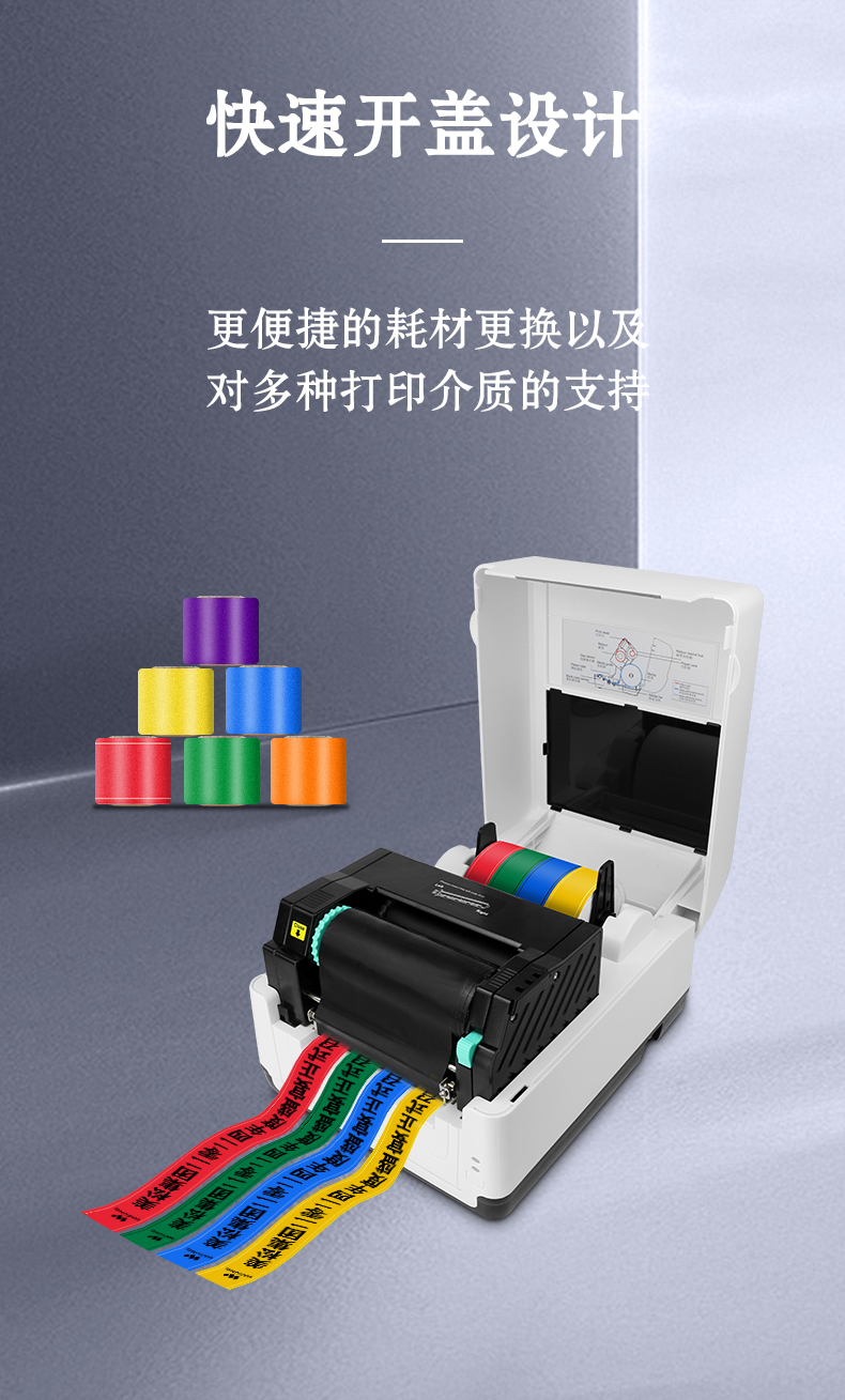熱轉(zhuǎn)印模式打印的效果更好,可打印多種不同的介質(zhì)類型,打印的適用范圍大幅提升,通過更換打印介質(zhì)實現(xiàn)多種打印效果,更換碳帶可以打印多種顏色
