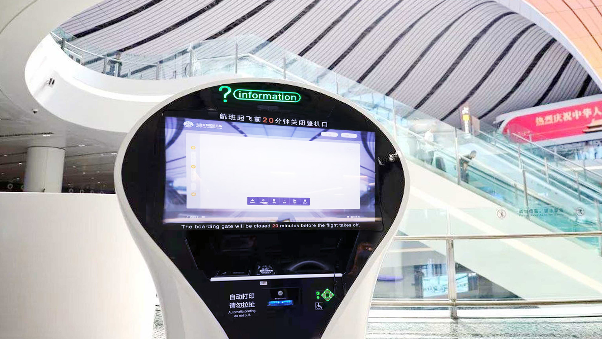 北京大興國際飛機場,不僅擁有140萬平方米的超大片面積,而且極其智能化、綠色化,被稱作為世界新七大奇跡。值機大廳,超過400個自助服務和自助設備為旅客提供方便快捷的服務,乘客不再需要經過一系列繁瑣的程序人工處理時,只需通過將本人身份證放在電子顯示屏上,即可完成航班自助查詢、行李自助托運,降低機場運營成本的同時緩解工作人員的工作壓力,助力北京大興國際機場不僅成為規(guī)模超大的智慧型機場,也是全球機場的標桿。