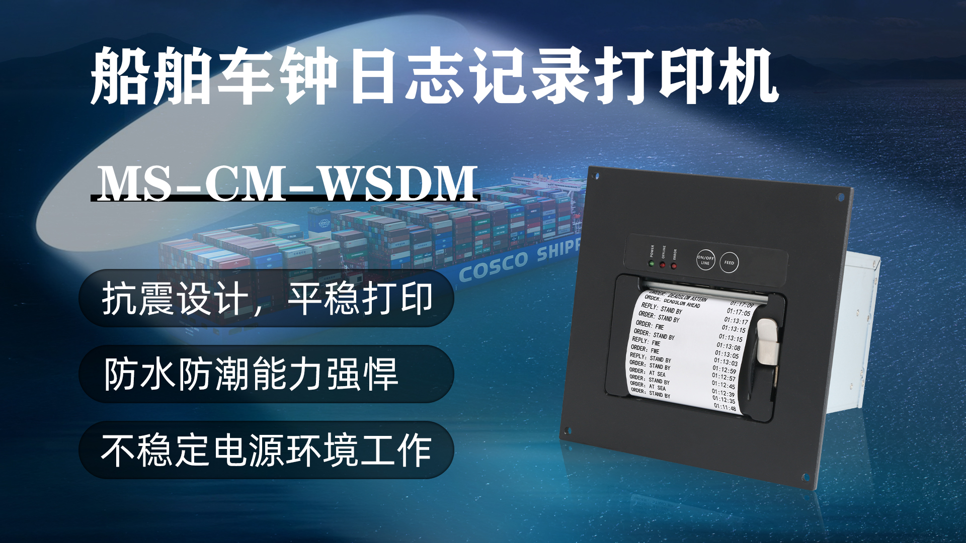 隨著科技的不斷發(fā)展,航運行業(yè)也在不斷迭代更新自己的技術(shù)設(shè)備,以提高安全性和效率。在這個領(lǐng)域中,MS-CM-WSDM船舶車鐘日志電報打印機成為了一項重要的技術(shù)裝備,為船舶的運行和管理提供了關(guān)鍵的支持。本文將探討MS-CM-WSDM船舶車鐘日志電報打印機的應(yīng)用和特點,以及它在船舶行業(yè)中的重要性。