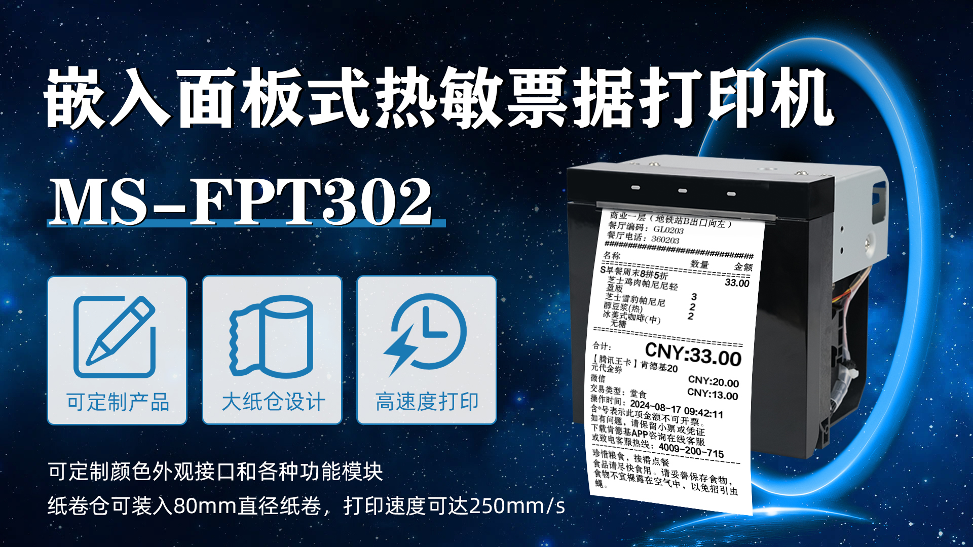美松研發(fā)的MS-FPT302這一款嵌入面板式的熱敏票據(jù)打印機(jī),它的性能和特點(diǎn)又如何,